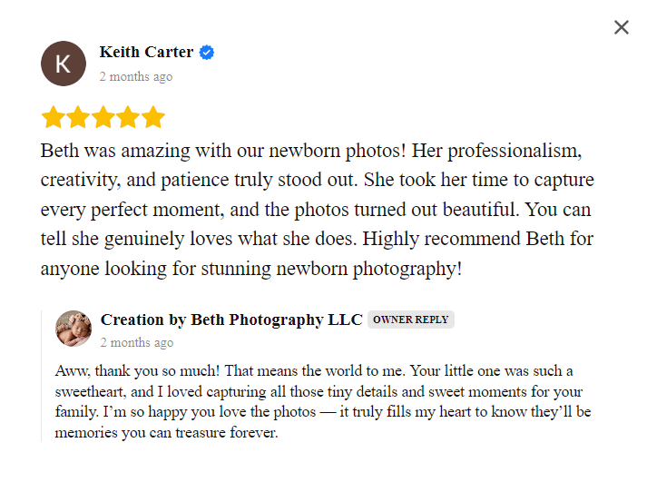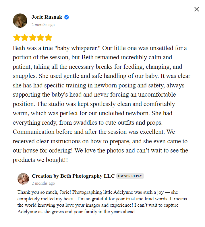 This allows me to provide the level of care, attention, and quality your baby deserves.